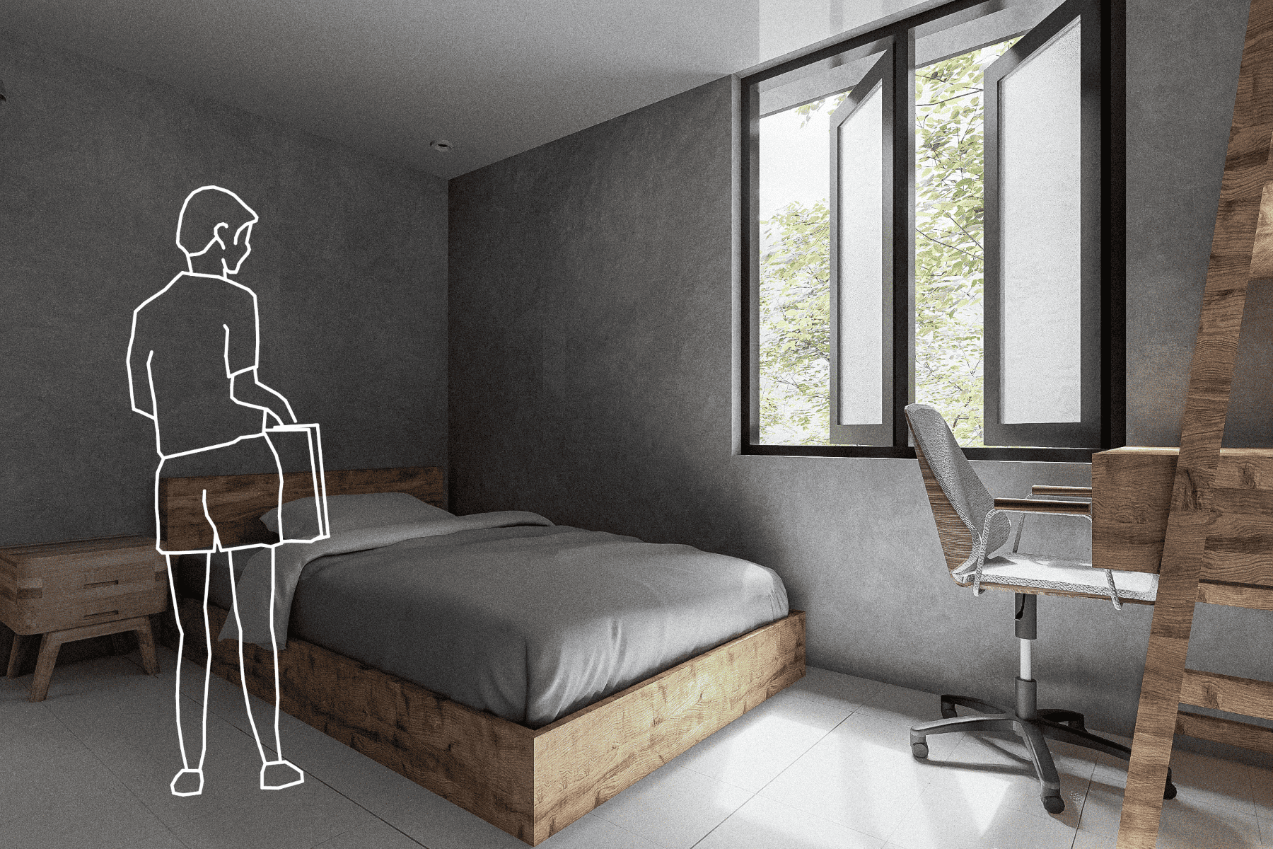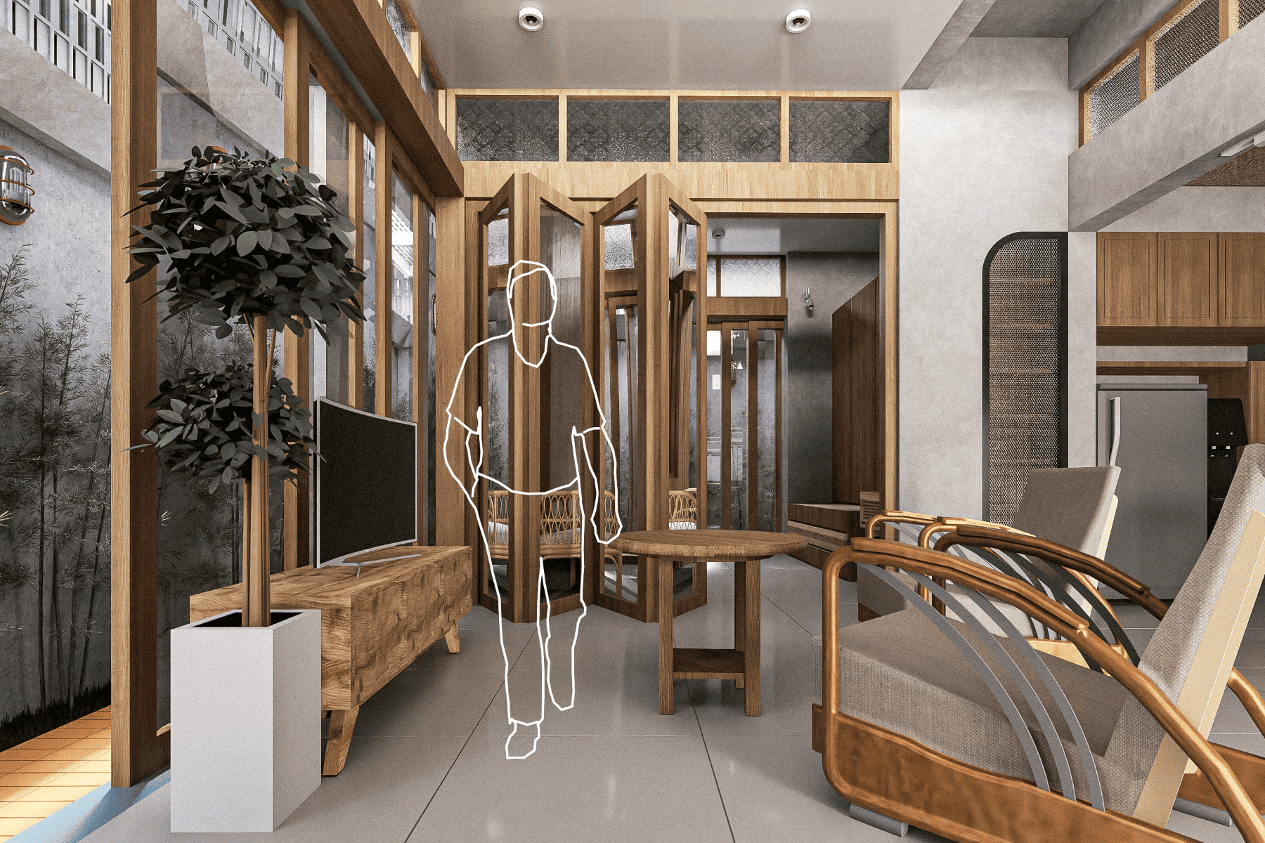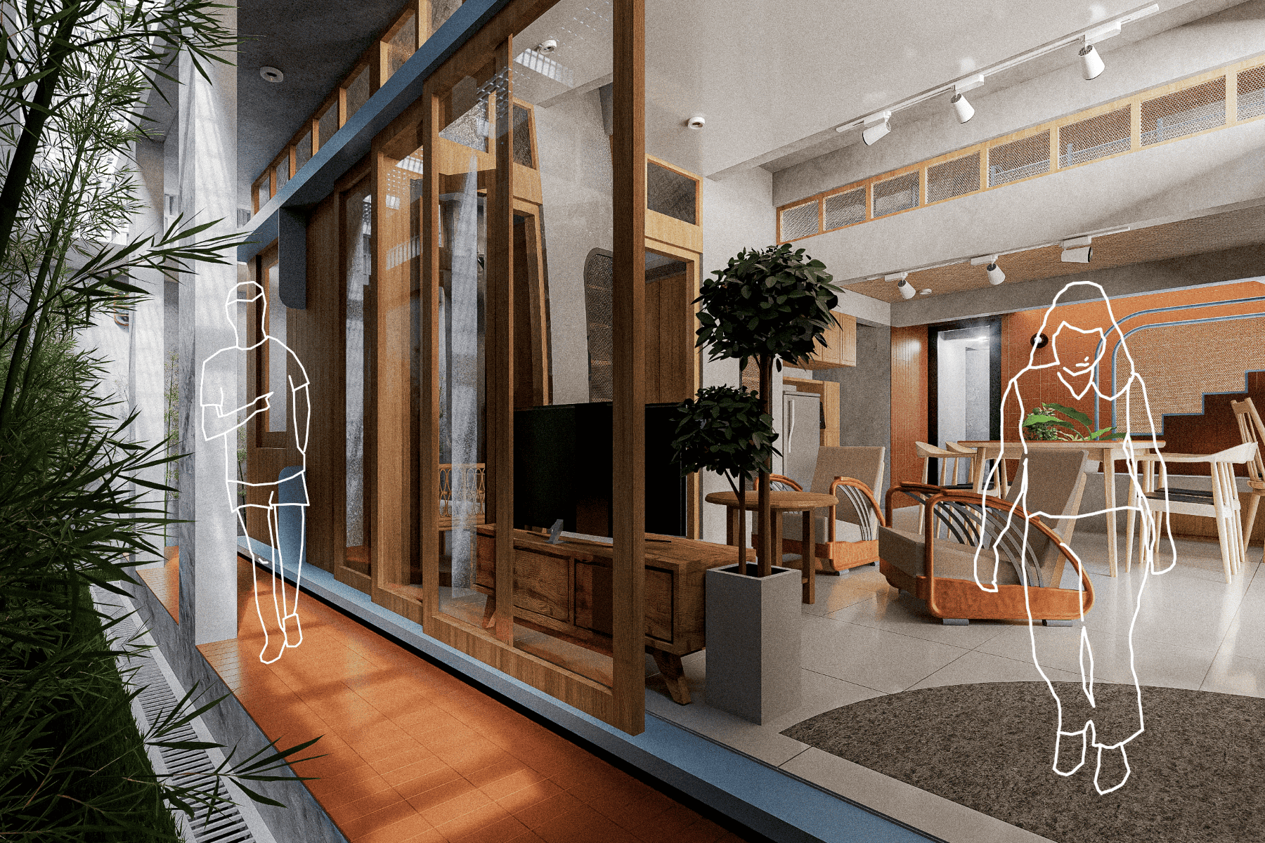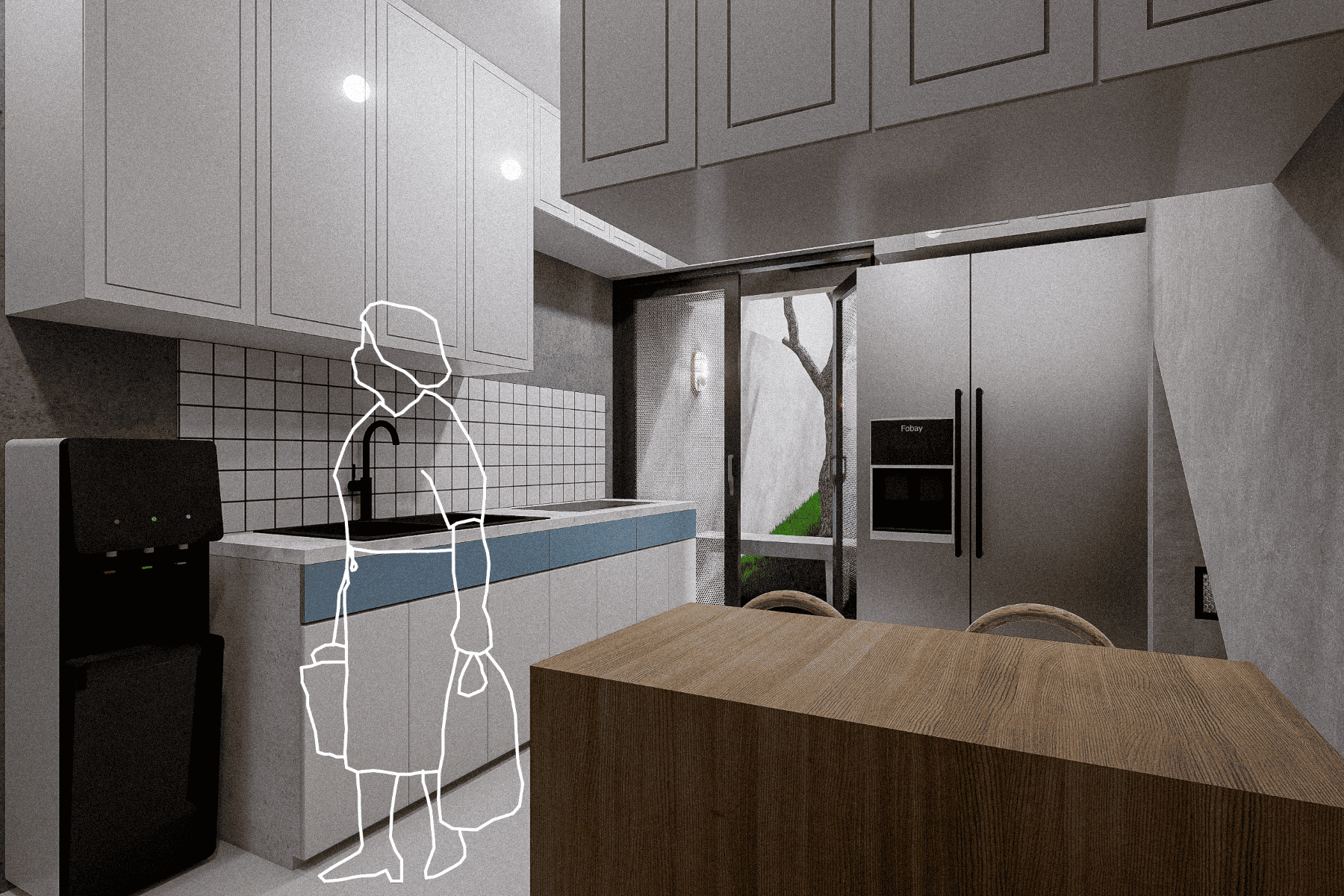Kehidupan di dalamnya berjalan sederhana namun penuh makna. Aktivitas sehari-hari mengalir lembut; antara bekerja, beristirahat, hingga bercengkerama bersama keluarga. Keteraturan menjadi bentuk kasih, dan ruang-ruang hadir bukan sebagai pembatas, melainkan sebagai ritme hidup yang cair dan selaras. Di tengah kesibukan, rumah ini memberi ruang untuk jeda, untuk kembali mengingat bahwa ketenangan adalah bentuk kemewahan yang sejati.