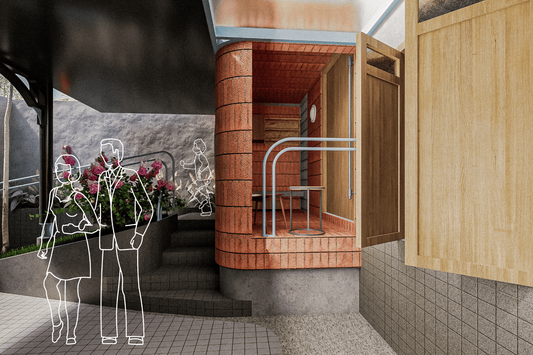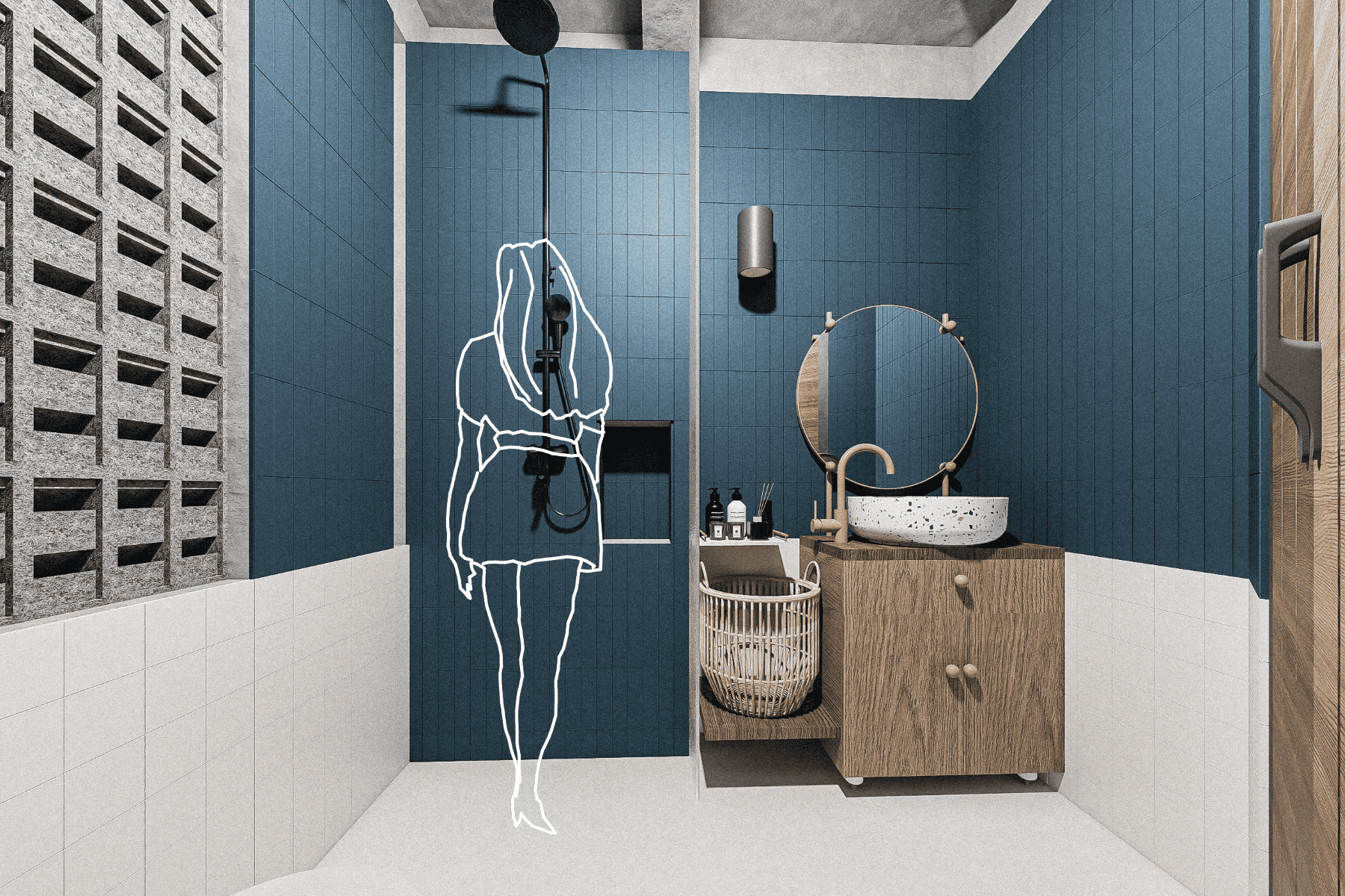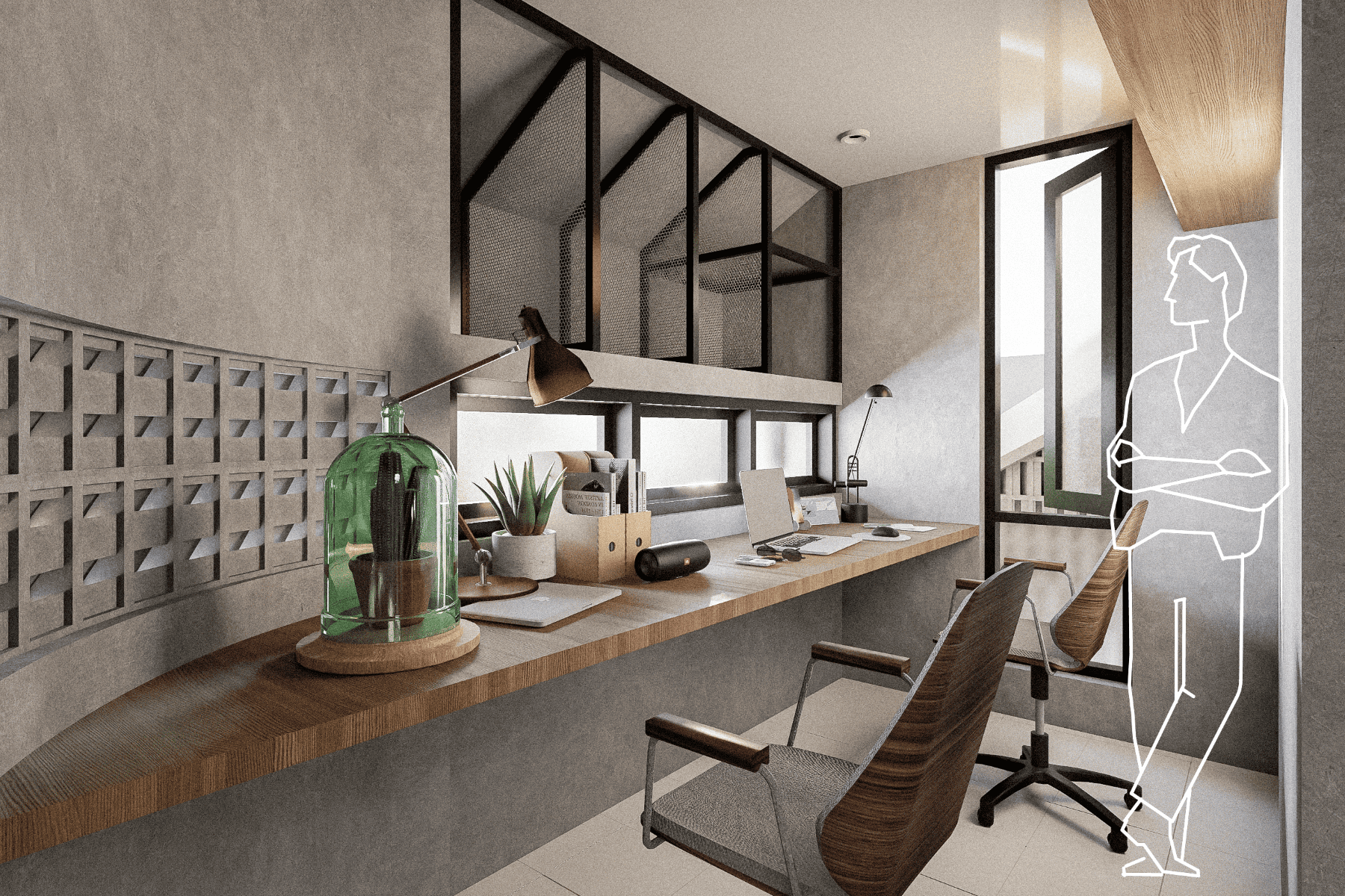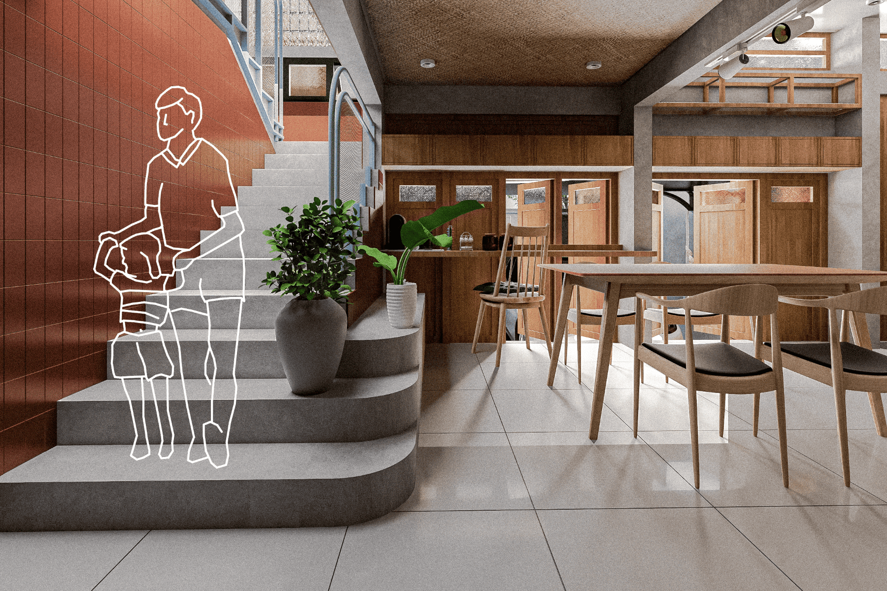 Fasad dan bentuk bangunan menjadi bahasa visual dari keseimbangan dua jiwa yang hidup di dalamnya. Setiap keputusan lahir dari keterbukaan dan niat baik, dari semangat “kami” yang mengalahkan ego pribadi. Maskulinitas dan kelembutan berpadu tanpa saling meniadakan, tegas namun tidak keras, hangat dan tidak berlebihan. Dari perpaduan itu muncul permainan antara sudut dan lengkung, antara garis kaku dan bentuk organik yang saling melengkapi. Warna dan tekstur menjadi simbol dua karakter yang berbeda, namun saling menenangkan satu sama lain.